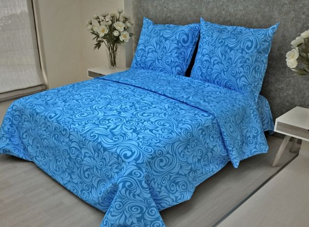 Простыня 1,5-спальная, бязь "Комфорт" (Узоры, синий)