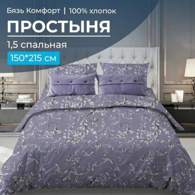Простыня 1,5-спальная, бязь "Комфорт" (Валенсия, сиреневый)