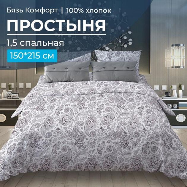 1,5-спальная простыня из бязи "Комфорт". Размер 150*215 см Группа товара
