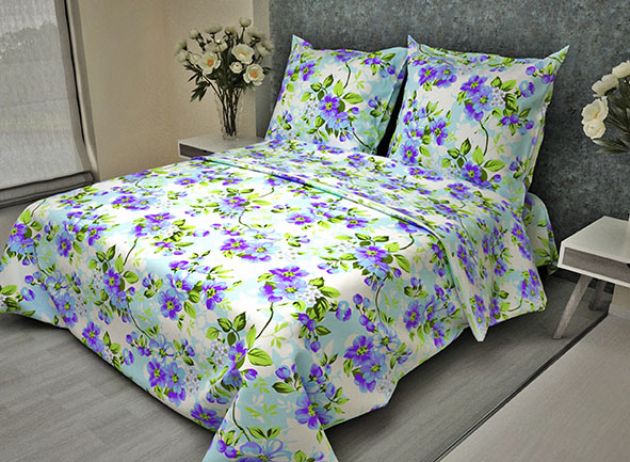 Простыня 1,5-спальная, бязь "Комфорт" (Яблоневый цвет, голубой)