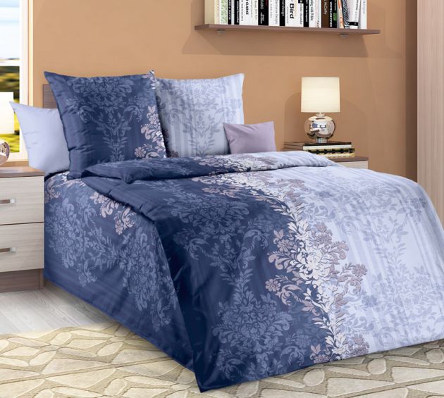 Простыня 1,5-спальная, бязь "Люкс" (Дуэт, синий)