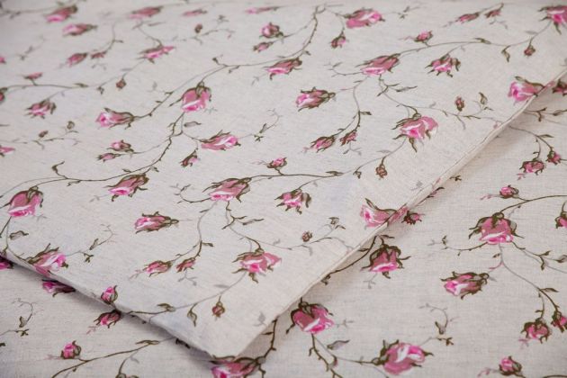 Простыня 1,5-спальная, набивная полульняная ткань (Роза)