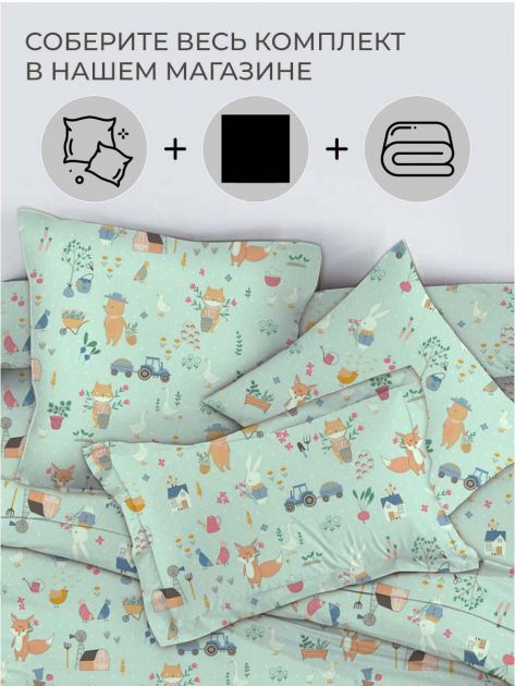 Простыня 1,5-спальная, перкаль, детская расцветка (Ферма)
