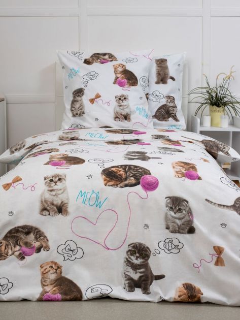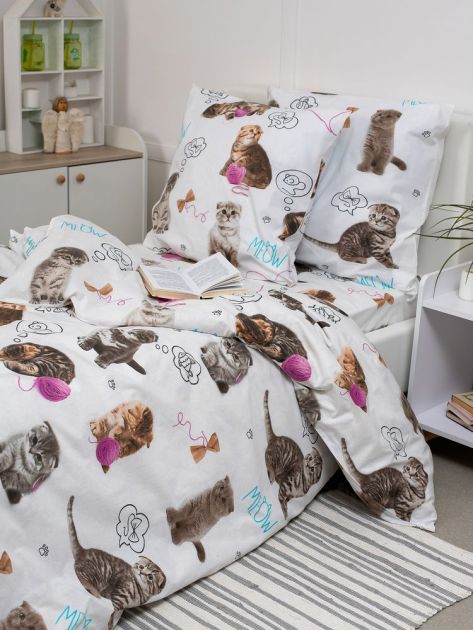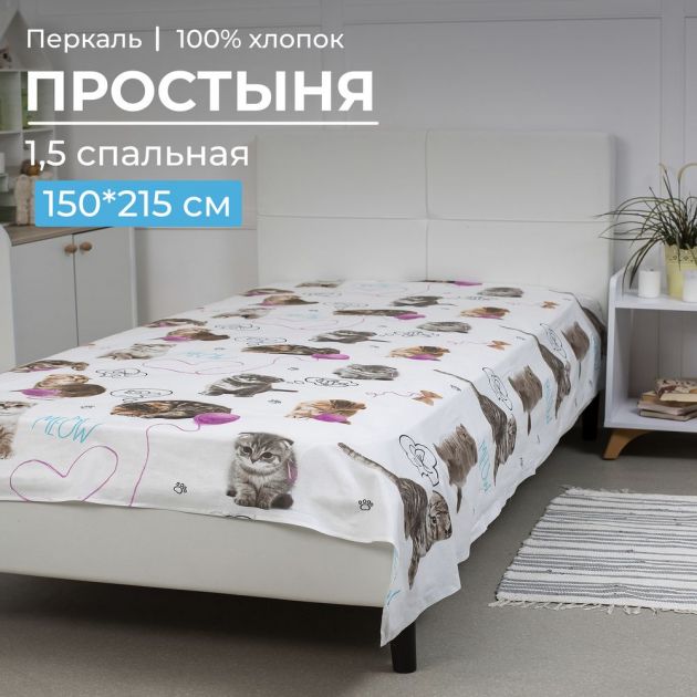 Простыня 1,5-спальная, перкаль, детская расцветка (Пушистики)