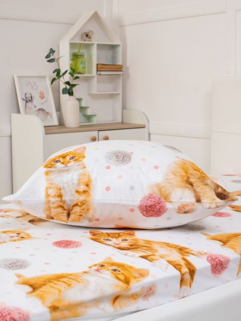 Простыня 1,5-спальная, перкаль, детская расцветка (Рыжие котята)