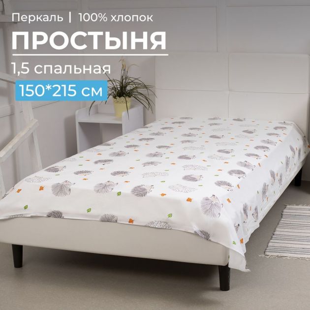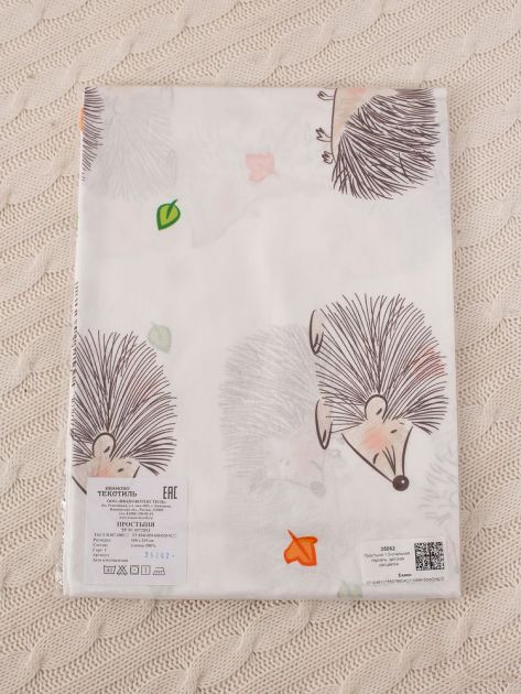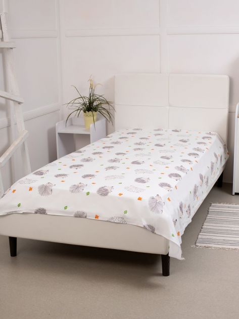 Простыня 1,5-спальная, перкаль, детская расцветка (Ёжики)
