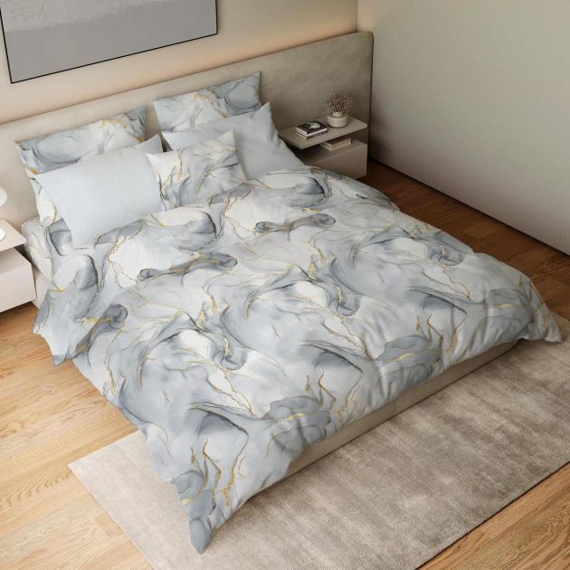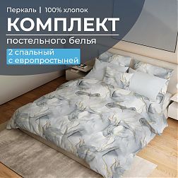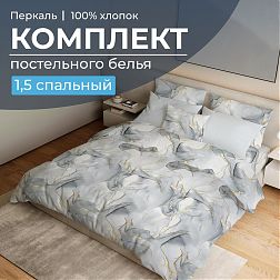 Простыня 1,5-спальная, перкаль (Мраморный узор, серый)