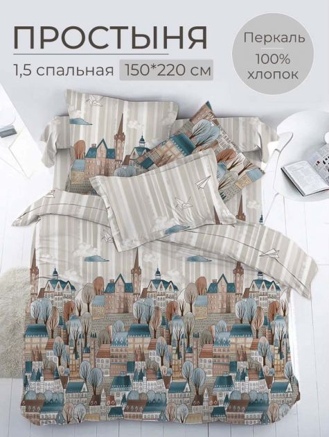 Простыня 150*220 см из перкаля - натуральной хлопчатобумажной ткани отличного качества. Плотность ткани 110 г/м2, очень плотное плетение, высокая четкость рисунка. Группа товара