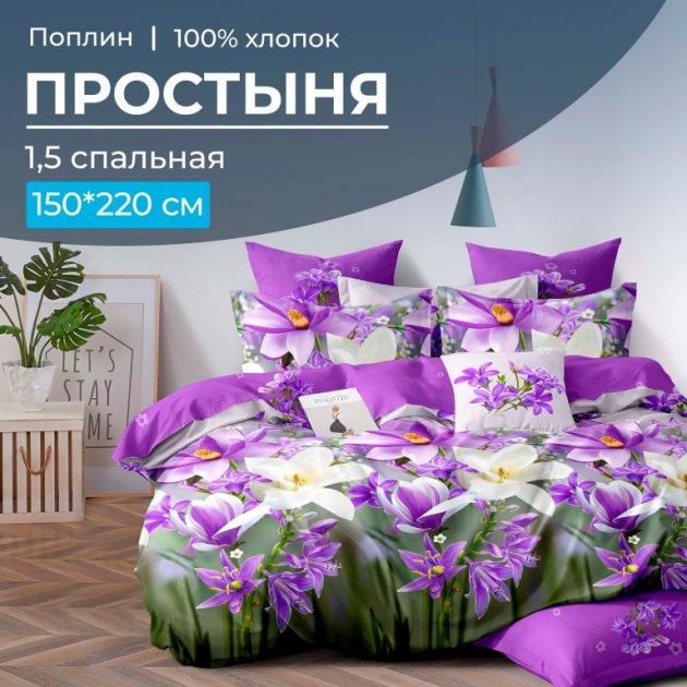 Простыня 1,5-спальная, поплин (Летний сад (основа))