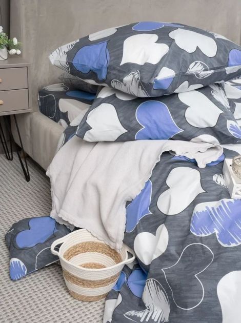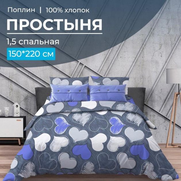 Простыня 1,5-спальная, поплин (Романтика, синий)