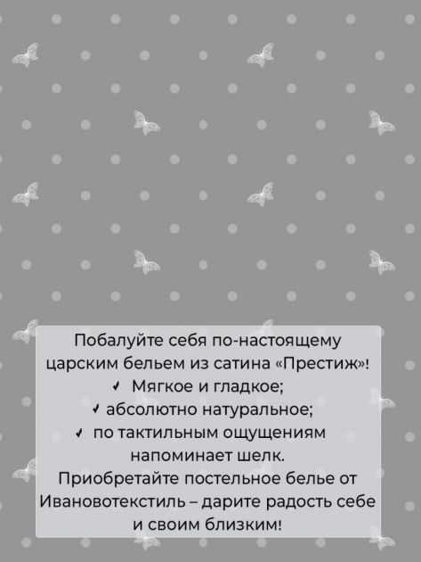 Бесшовная 1,5-спальная простыня из сатина «Престиж» размером 150*220 см, плотностью ткани 115 г/м2. Постельное белье из сатина «Престиж» нежное, мягкое, из 100% хлопка, похожее на шёлк, но при этом прочное, износостойкое, выдерживает многочисленные стирки, не теряя исходного цвета. В нашем каталоге вы сможете собрать замечательный комплект постельного белья, исходя из Ваших предпочтений и размеров спальных принадлежностей, а благодаря великолепному качеству ткани и пошива постельное белье прослужит долго и будет радовать Вас и ваших близких. Группа товара