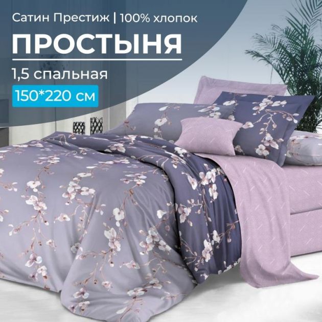 Простыня 1,5-спальная, сатин "Престиж" (Сигурни (компаньон))