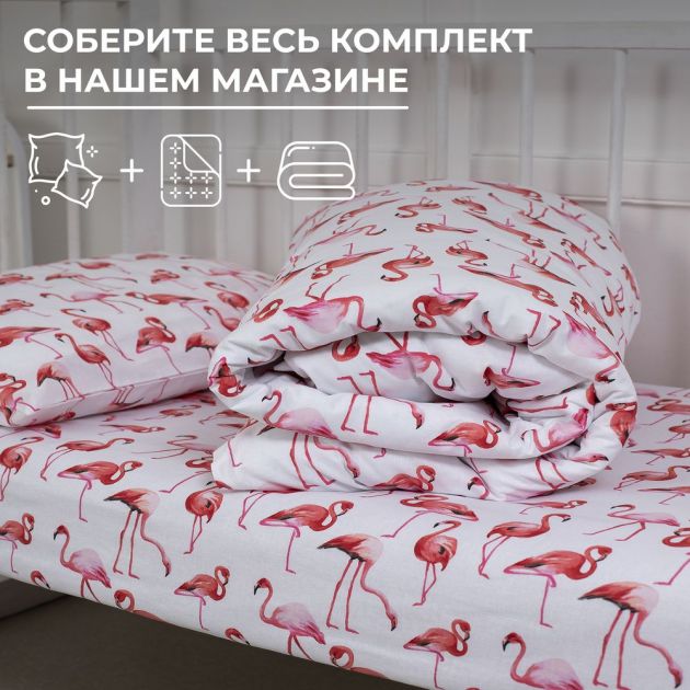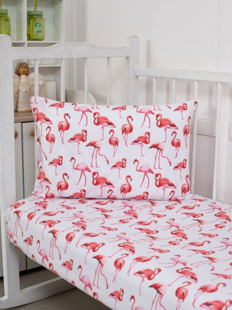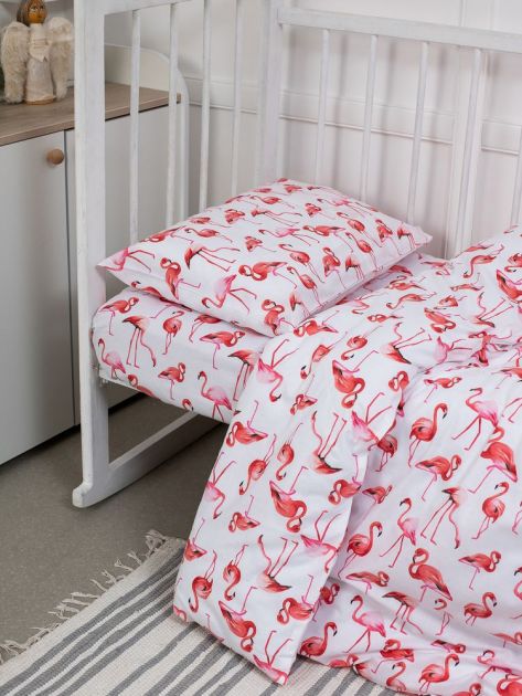 Простыня 100*150 см в детскую кроватку, перкаль, детская расцветка (Фламинго)