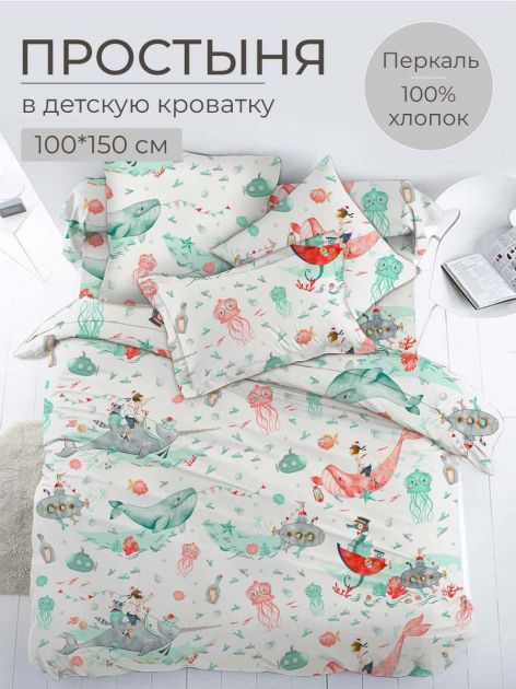Простыня 100*150 см в детскую кроватку, перкаль, детская расцветка (Морячок)