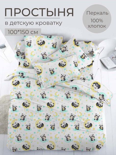 Простыня 100*150 см в детскую кроватку, перкаль, детская расцветка (Панда Лёлик)