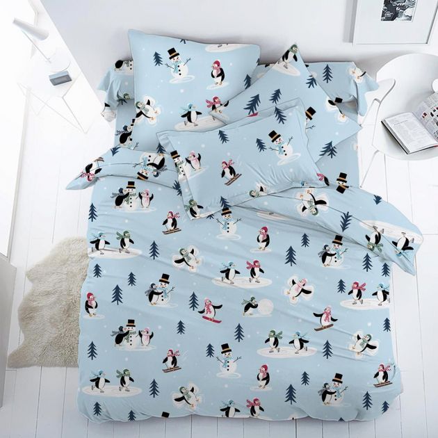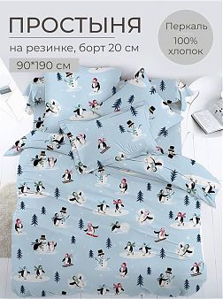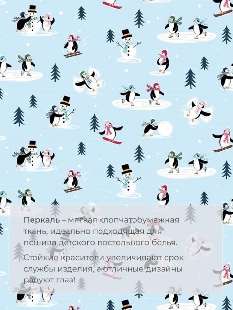 Простыня 100*150 см в детскую кроватку, перкаль, детская расцветка (Пингвинята)