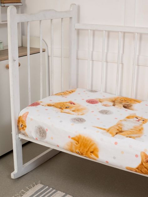Простыня 100*150 см в детскую кроватку, перкаль, детская расцветка (Рыжие котята)