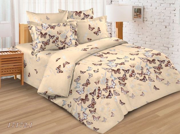 Простыня 2-спальная, бязь ГОСТ (Бабочки, бежевый)