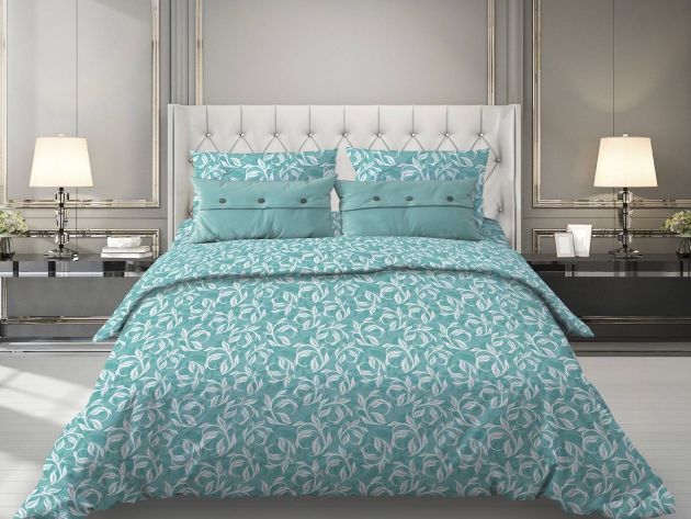 Простыня 2-спальная, бязь "Комфорт" (Вьюнок, бирюзовый)