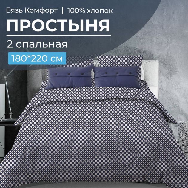 Простыня 2-спальная, бязь "Комфорт" (Виши, темно-синий)