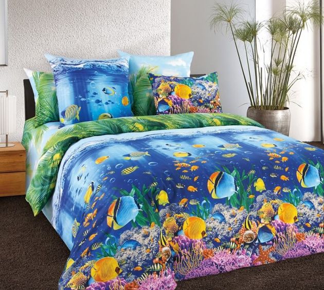 Простыня 2-спальная, бязь "Люкс" (Подводный мир 3 D)