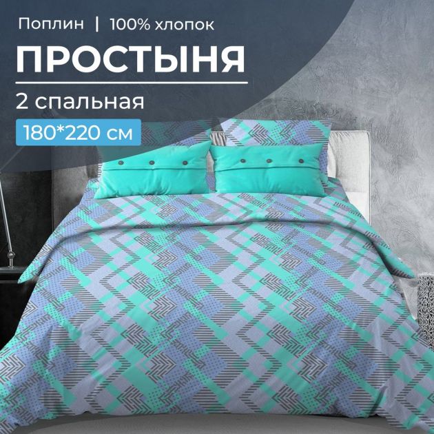 Простыня 2-спальная, поплин (Ниагара, бирюзовый)
