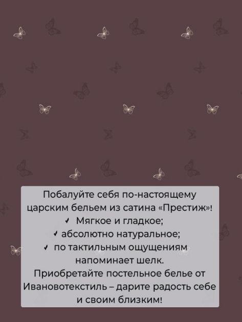 Бесшовная 2-спальная простыня из сатина «Престиж» размером 180*220 см, плотностью ткани 115 г/м2. Постельное белье из сатина «Престиж» нежное, мягкое, из 100% хлопка, похожее на шёлк, но при этом прочное, износостойкое, выдерживает многочисленные стирки, не теряя исходного цвета. В нашем каталоге вы сможете собрать замечательный комплект постельного белья, исходя из Ваших предпочтений и размеров спальных принадлежностей, а благодаря великолепному качеству ткани и пошива постельное белье прослужит долго и будет радовать Вас и ваших близких. Группа товара