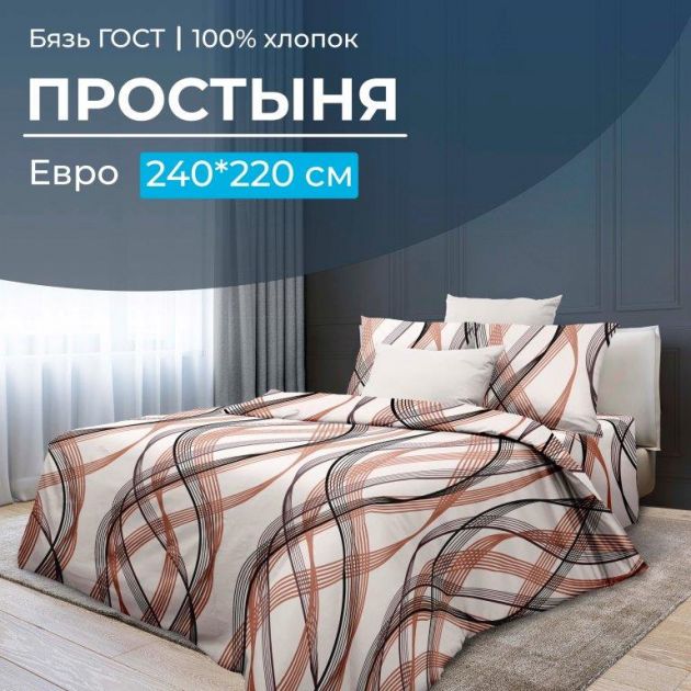 Простыня Евроразмера 240*220 см из плотной набивной бязи качества ГОСТ (плотность 140г/м2). Группа товара