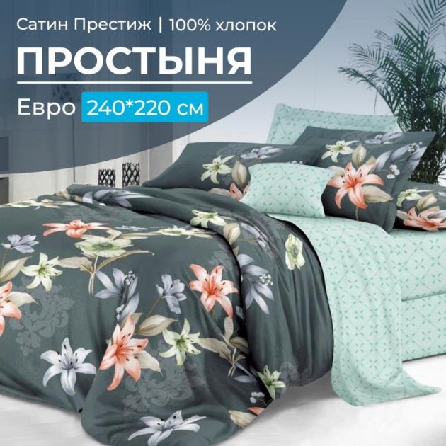 Простыня Евро 240*220 см, сатин "Престиж" (Лиля (компаньон))