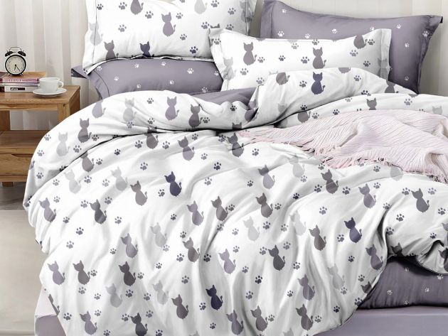 Простыня Евро 240*220 см, сатин "Престиж" (Нежные кошечки (компаньон))