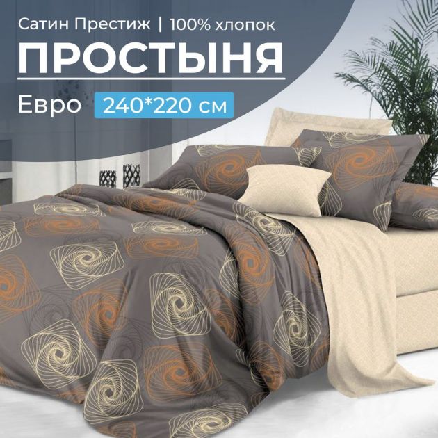 Простыня Евро 240*220 см, сатин "Престиж" (Оберег (компаньон))