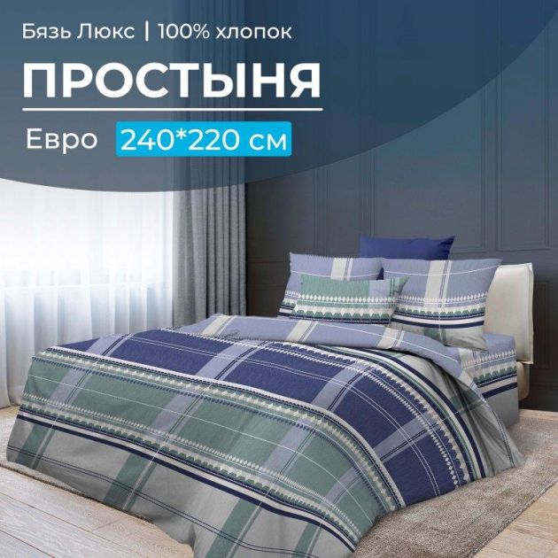 Простыня Евроразмера 240*220 см из бязи "Люкс" улучшенного качества. Стойкие красители. Состав 100 % хлопок. Группа товара