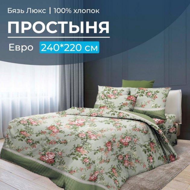 Простыня Евроразмера 240*220 см из бязи "Люкс" улучшенного качества. Стойкие красители. Состав 100 % хлопок. Группа товара
