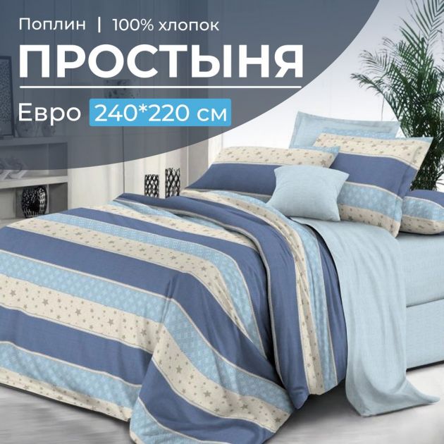 Простыня Евро, поплин (Морской стиль (компаньон))