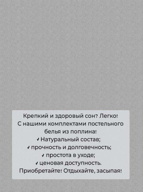 Ищете комфортную и качественную простынь, которая обеспечит Вам и Вашей семье мягкий сон? Тогда простыня Евро размером 240х220 см из поплина - 100% хлопка, плотностью ткани 110 г/м2, то что надо! Хлопок обладает высоким качеством, что гарантирует Вам долговечность и удобство использования. Хлопковая простыня обеспечит приятную прохладу летом и тепло зимой, благодаря своей дышащей и гипоаллергенной структуре. Кроме того, она легко стирается и сохраняет свою форму и качество даже после многих стирок. Выберите качество и комфорт для своего сна с нашей хлопковой простыней из поплина! Группа товара