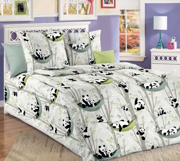 Простыня на резинке 060*120 см, бязь "Люкс", детская расцветка (Веселые панды)
