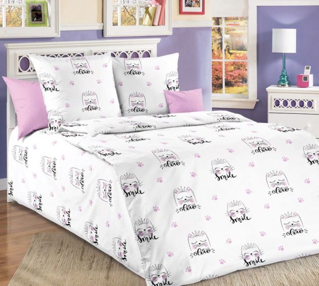 Простыня на резинке 080*160 см, бязь "Люкс", детская расцветка (Китти)