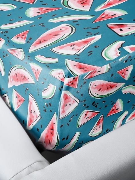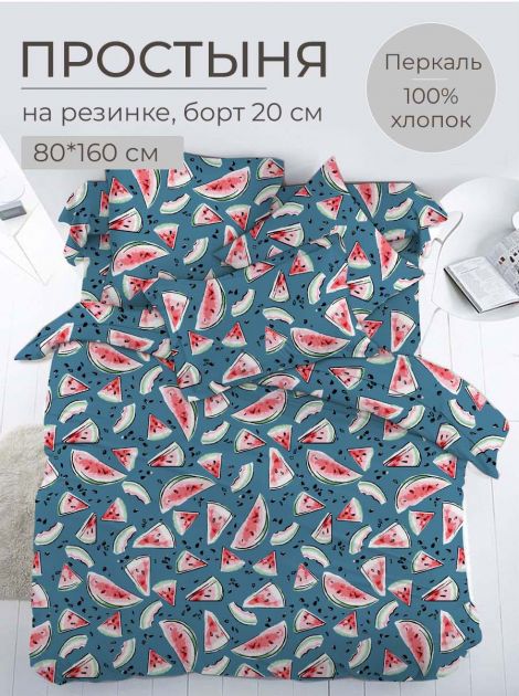Простыня на резинке 080*160 см, перкаль, детская расцветка (Арбузики, бирюзовый)