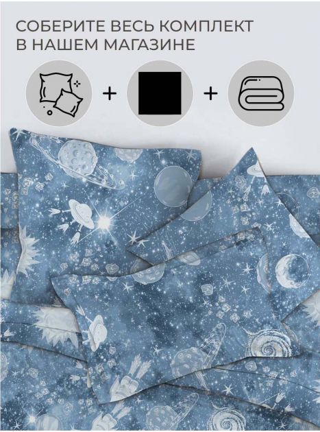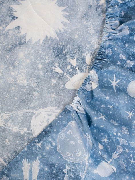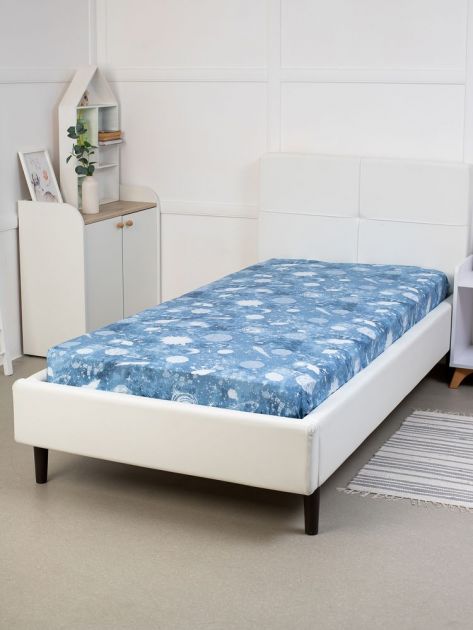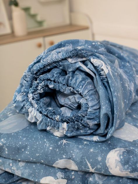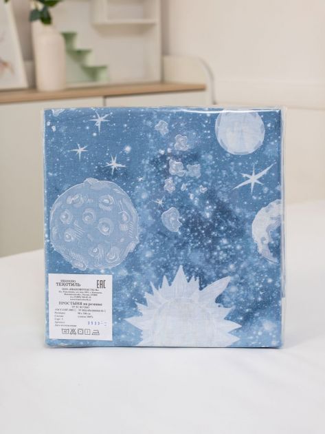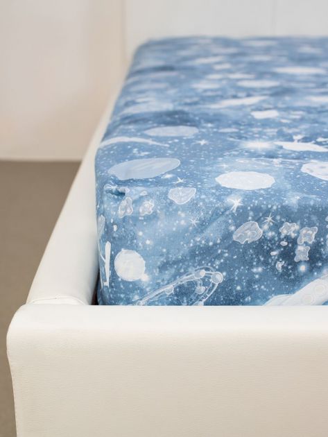 Простыня на резинке 080*160 см, перкаль, детская расцветка (Космос)