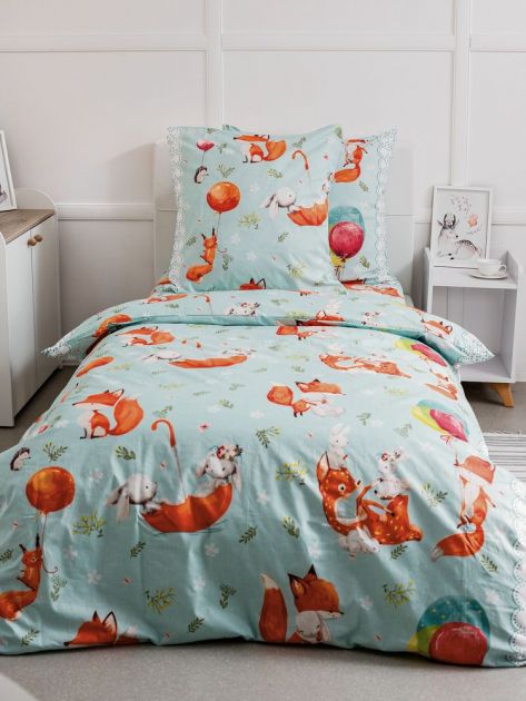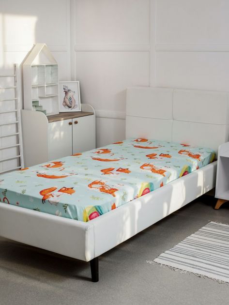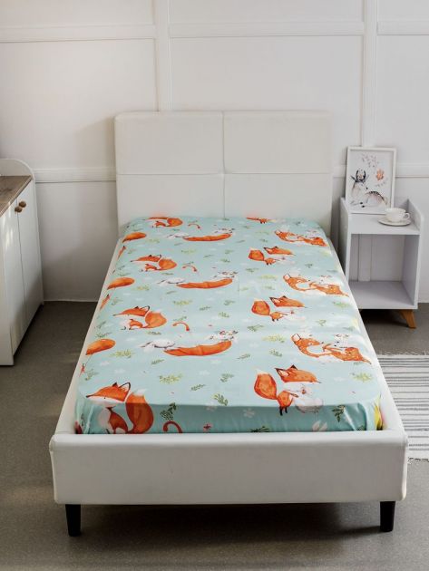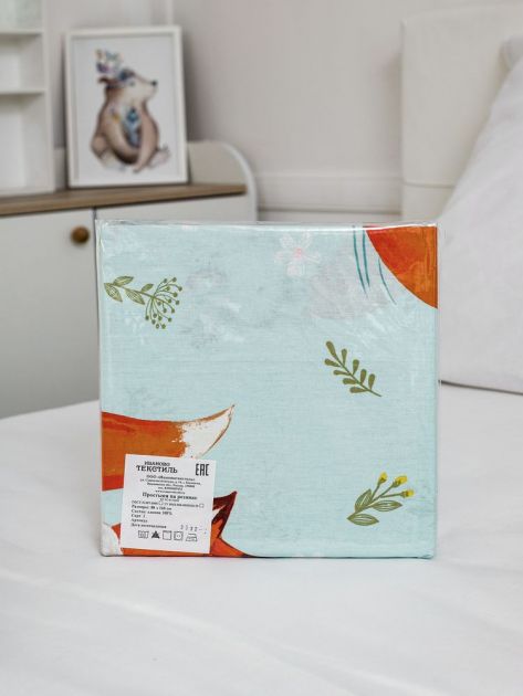 Простыня на резинке 080*160 см, перкаль, детская расцветка (Лисята)