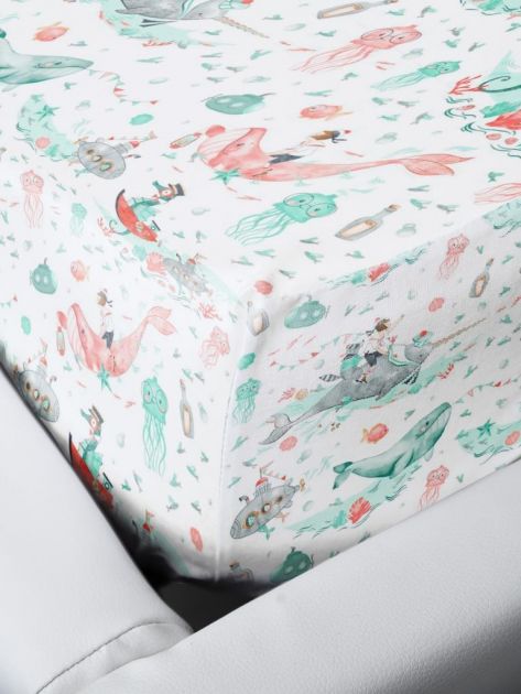Простыня на резинке 080*160 см, перкаль, детская расцветка (Морячок)