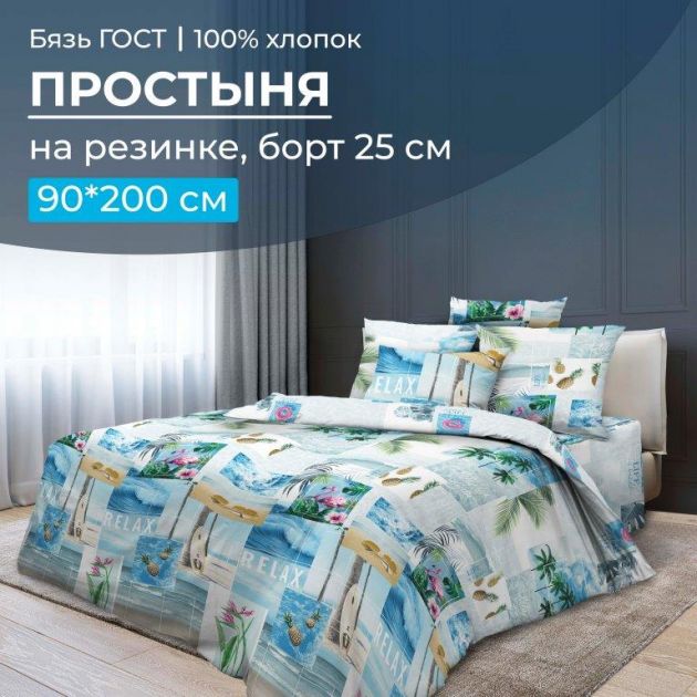 Простыня на резинке 090*200 см, бязь ГОСТ, борт 25 см (Парадайз)