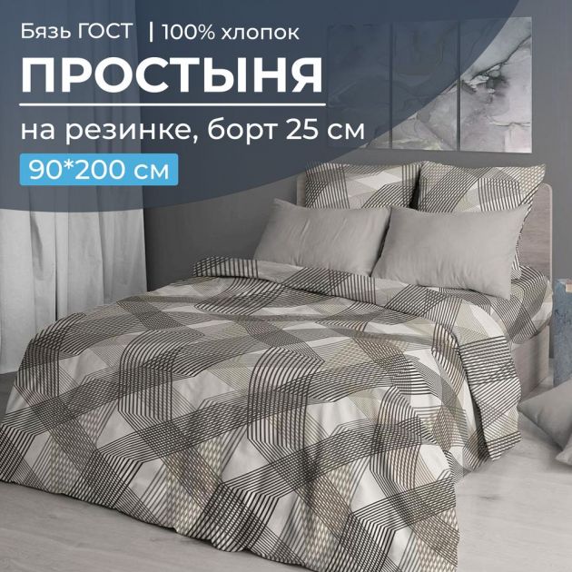 Простыня на резинке 090*200 см, бязь ГОСТ, борт 25 см (Родриго, бежевый)