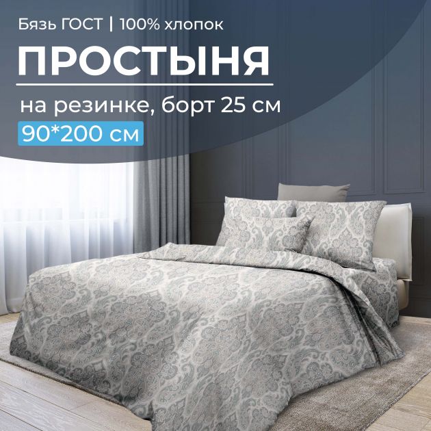 Простыня на резинке 090*200 см, бязь ГОСТ, борт 25 см (Тинторетто)