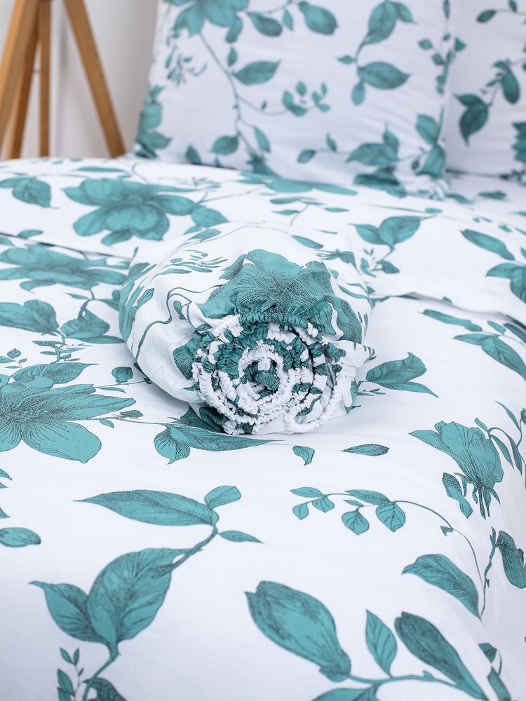 Простыня на резинке 090*200 см, бязь "Комфорт 150 см", борт 25 см (Грация, зеленый)
