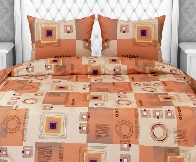 Простыня на резинке 090*200 см, бязь "Комфорт 150 см", борт 25 см (Графика, оранжевый)