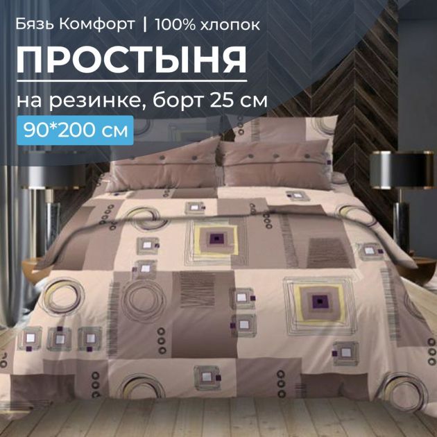 Очень удобная простыня на резинке из бязи «Комфорт» плотностью ткани 119 г/м2 на спальное место 90*200 см (борт/спуск 25 см). Резинка проходит по всему периметру (кругу) спального места. Бязь «Комфорт» - обладает высоким качеством, что гарантирует Вам долговечность и удобство использования. Хлопковая простыня обеспечит приятную прохладу летом и тепло зимой, благодаря своей дышащей и гипоаллергенной структуре. Кроме того, наша хлопковая простыня легко стирается и сохраняет свою форму и качество даже после многих стирок. Выбирайте качество и комфорт для своего сна с нашей хлопковой простыней! А огромный выбор дизайнов поможете Вам создать свой уникальный комплект постельного белья. Наши изделия произведены в Ивановской области, имеют сертификацию качества "ГОСТ 31307-2005", а также зарегистрированы в государственной системе маркировки "Честный знак". Группа товара