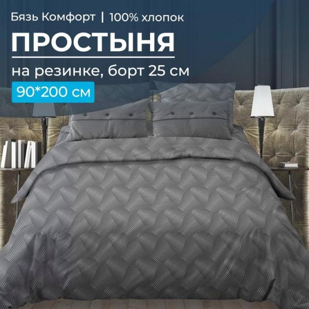 Простыня на резинке 090*200 см, бязь "Комфорт 150 см", борт 25 см (Иллюзия, серый)