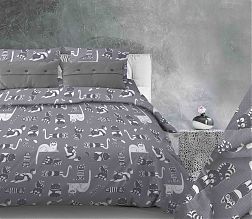 Простыня на резинке 090*200 см, бязь "Комфорт 150 см", борт 25 см (Кошкин дом, тёмно-серый)