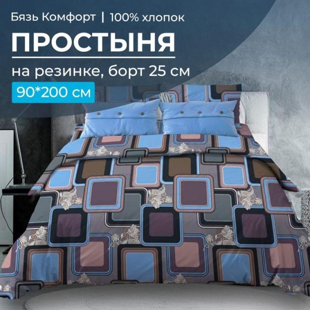 Очень удобная простыня на резинке из бязи «Комфорт» плотностью ткани 119 г/м2 на спальное место 90*200 см (борт/спуск 25 см). Резинка проходит по всему периметру (кругу) спального места. Бязь «Комфорт» - обладает высоким качеством, что гарантирует Вам долговечность и удобство использования. Хлопковая простыня обеспечит приятную прохладу летом и тепло зимой, благодаря своей дышащей и гипоаллергенной структуре. Кроме того, наша хлопковая простыня легко стирается и сохраняет свою форму и качество даже после многих стирок. Выбирайте качество и комфорт для своего сна с нашей хлопковой простыней! А огромный выбор дизайнов поможете Вам создать свой уникальный комплект постельного белья. Наши изделия произведены в Ивановской области, имеют сертификацию качества "ГОСТ 31307-2005", а также зарегистрированы в государственной системе маркировки "Честный знак". Группа товара